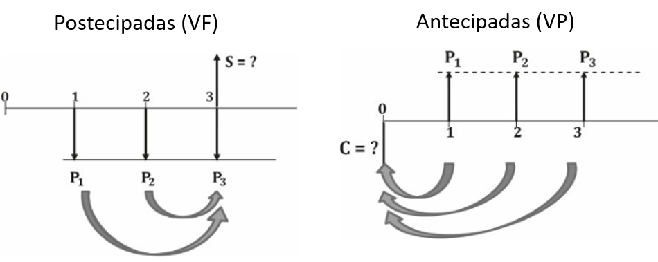 - Postecipadas (VF): Trata-se em definir o valor futuro do fluxo de caixa