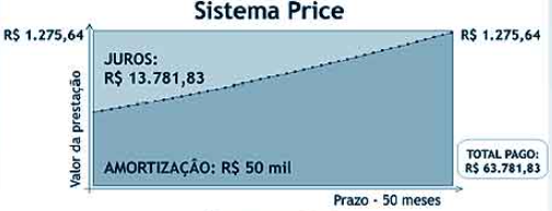 Sistema de amortização francês (PRICE): O empréstimo é quitado mediante o pagamento de prestações fixas e constantes a cada período. Cada prestação inclui os juros mais uma parte de amortização (pagamento) do principal da dívida